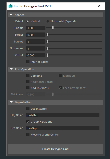 「Hexagon Grid Creator for Maya 2.1.0 (maya script)」